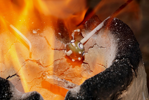 Neben den oben vorgestellten Lehmöfen zur Herstellung von Glasgefäßen verfügt die RömerWelt am caput limitis schon seit 2020 über mehrere Lehmöfen zur Herstellung von Glasperlen. Auch diese werden nur mit Holz befeuert und kommen natürlich ohne Holzkohle und Blasebalg aus.