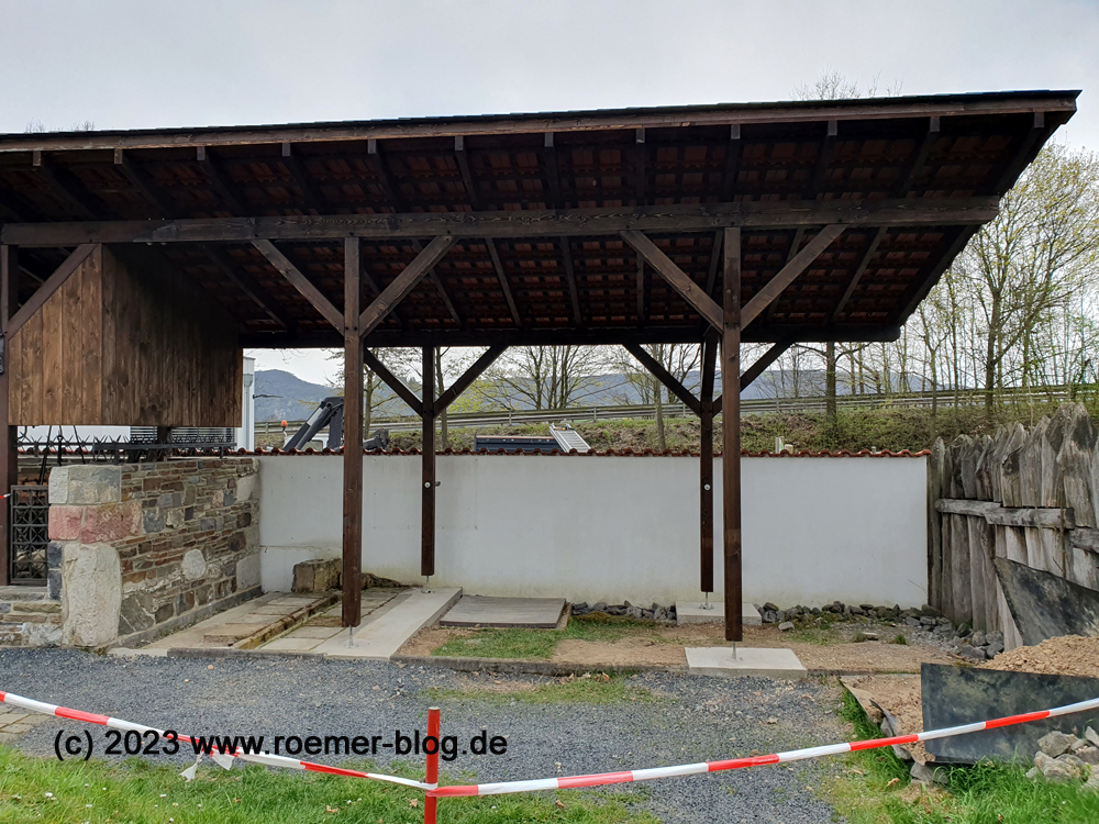 Die Verlängerung eines bestehenden Schutzdachs zur Unterbringung einer Glashütte in der RömerWelt ist über einen Spendenaufruf über die www.heimatleben.de-Plattform der Sparkasse gefördert worden. Hierzu siehe die RömerBlog-Einträge vom 16.01.2023, 5.03.2023 und 1.04.2023. Die restlichen Geldmittel für den Schutzbau wurden von der Stiftung "Caput Limitis" erbracht. Die Fundamente wurden in Eigenleistung mithilfe von Ehrenamtlichen (Dank an Martin Meffert und Murph) erstellt, siehe die Römer-Blog-Einträge vom 4.03.2023, 13.03.2023 und 16.03.2023.